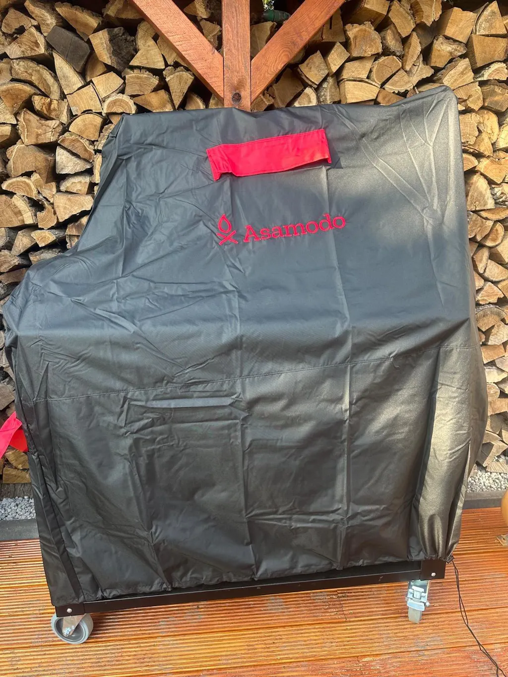Notre bâche est fabriquée en Allemagne et offre une protection maximale contre le vent, la pluie et le soleil. Il est en anthracite foncé et le rouge Asamodo crée un beau contraste.