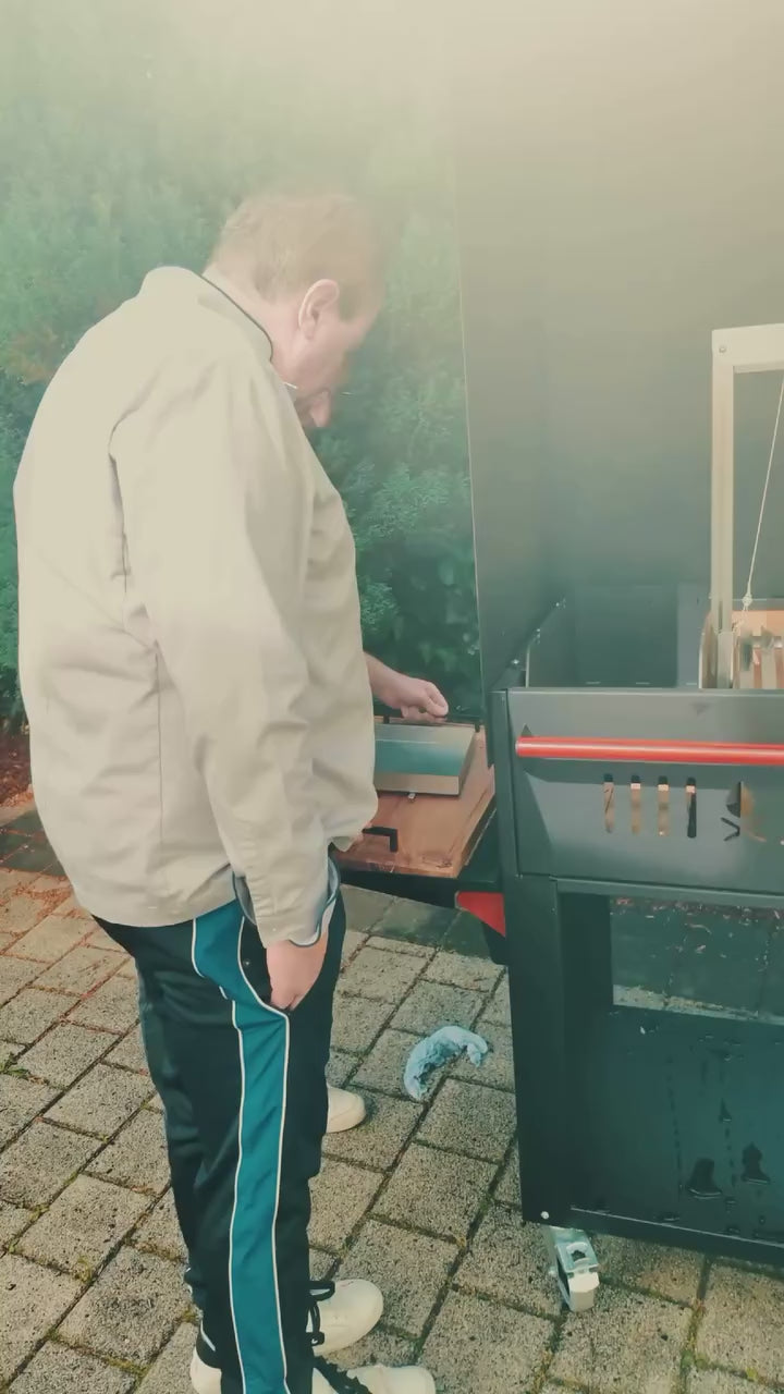 Il tavolo modulare trasforma il Brasa e il tavolo da barbecue in una postazione di lavoro completa. Offre uno spazio di lavoro aggiuntivo direttamente sul barbecue. Il tavolo può essere posizionato su entrambi i lati del barbecue a seconda delle esigenze. Si monta su entrambi i lati con 4 viti al posto delle maniglie.